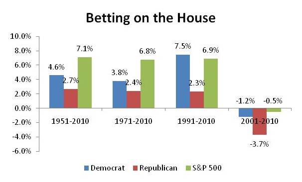 Does the market really perform better when a particular party controls the White House? What about the Senate or the House of Representatives? Is it better for the market when a party controls both the legislative and executive branches of government? More importantly, could investors have outperformed the market by betting on a particular party?