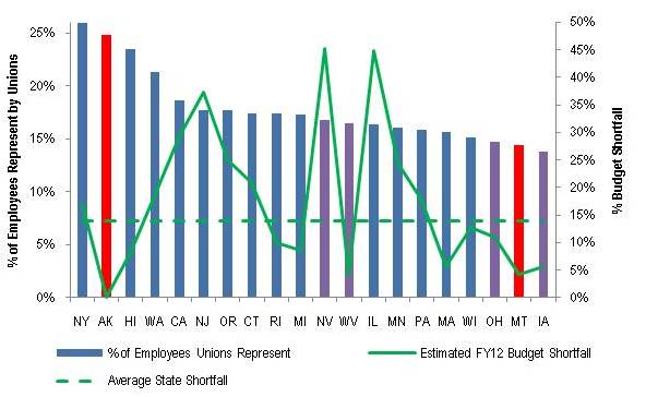 Unionized States Have Higher Projected Budget Shortfalls