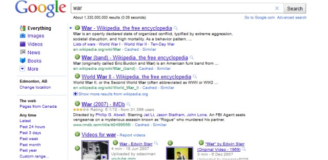 Canadian-based Conservative Google Search on War