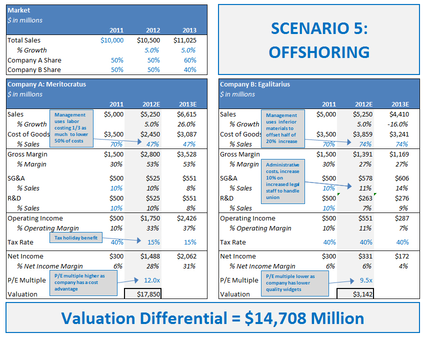 While Egalitarius’ management balanced shareholder interests with society’s well-being, Meritocratus ruthlessly pursued maximizing its bottom line.