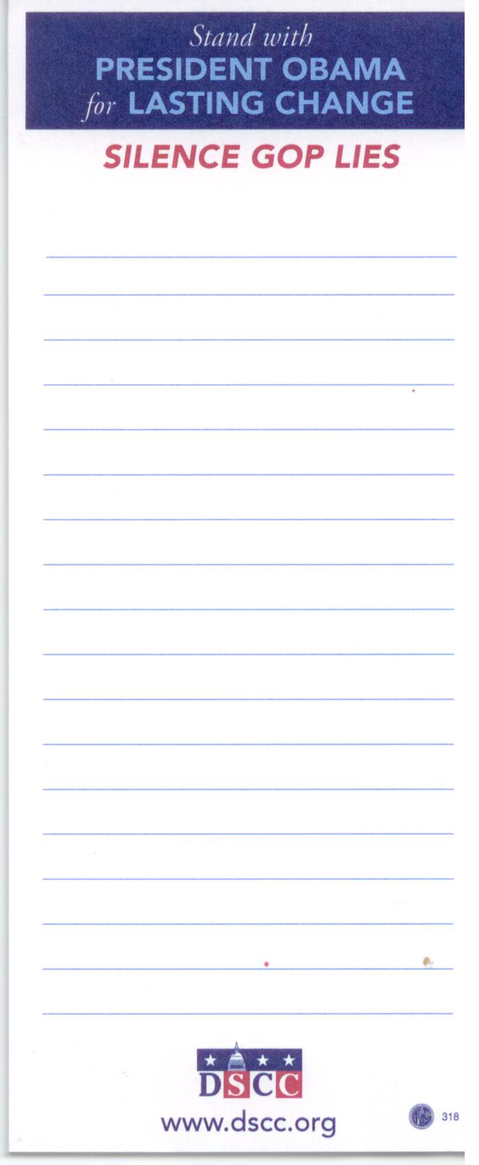 Republicans also send their own hyperbole out to the masses, but they never sent me a nifty writing pad that said “Silence Democrat Lies.”