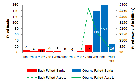 As of March 2011, a total of 323 banks with ~$272 billion of assets have failed during the Obama Administration. The average bank that failed after 2008 had ~$841 million of assets.