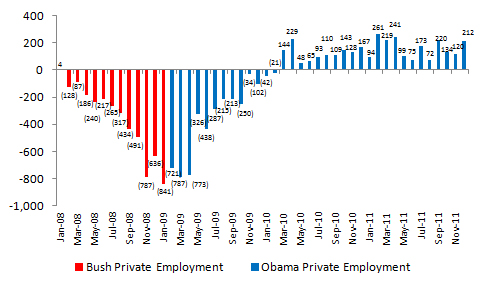 Bush vs. Obama: Unemployment (December 2011 Jobs Data)