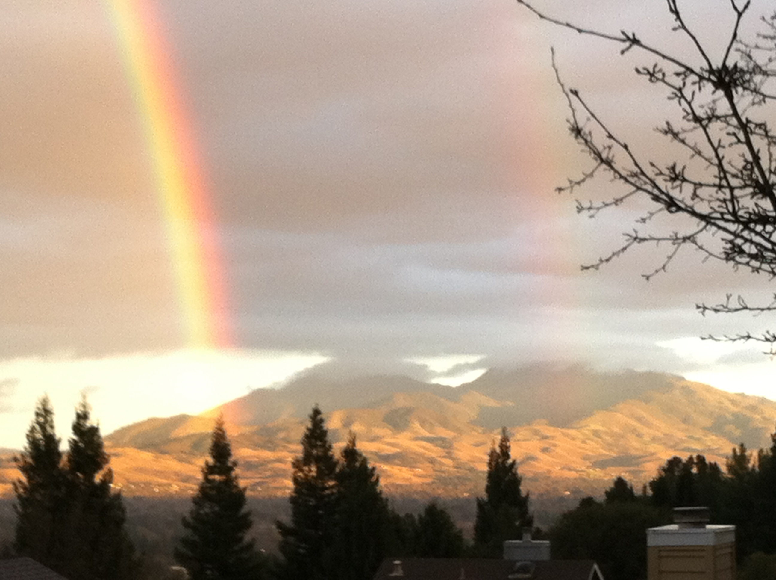 Sometimes it helps to take a break from politics to enjoy nature’s splendor. In this picture taken today, a double rainbow appears over Mount Diablo.