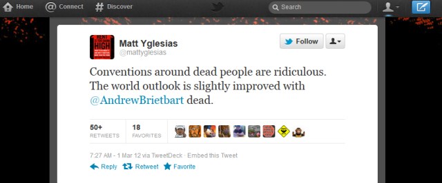 35 Responses to Humanity Optional: Matthew Yglesias Spits On Breitbart’s Grave