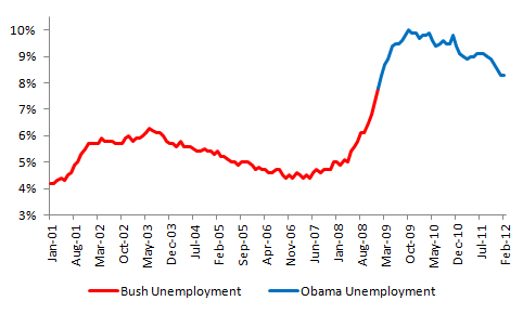 Bush vs. Obama: Unemployment (February 2012 Jobs Data)