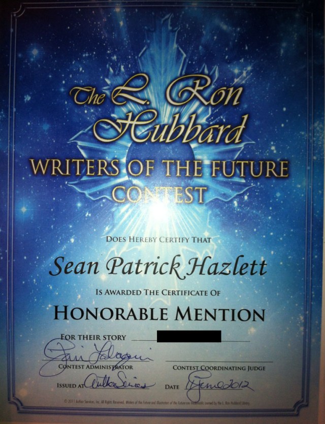Back in December, I posted an article on the Writers of the Future Contest, and ultimately reported my Honorable Mention for 1Q29. Since then, the contest has gone on to report the overall contest winners for 1Q12 (aka 1Q29) and 2Q12 (aka 2Q29).